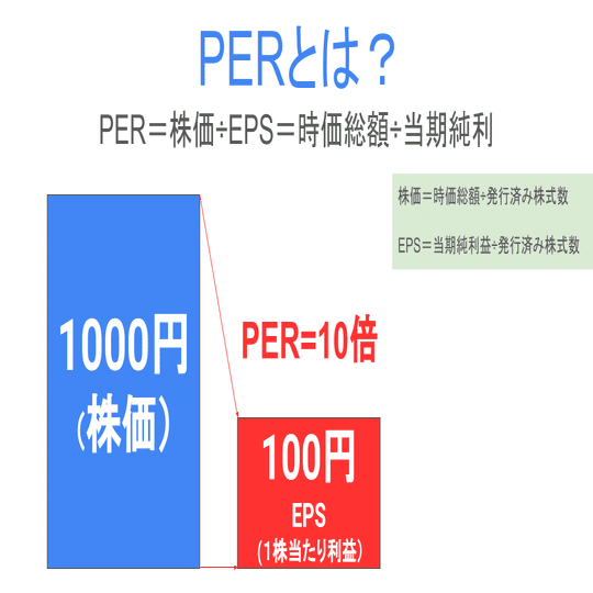 PERは、企業の株価を一株あたりの利益(EPS、Earnings Per Share)で割って計算されます