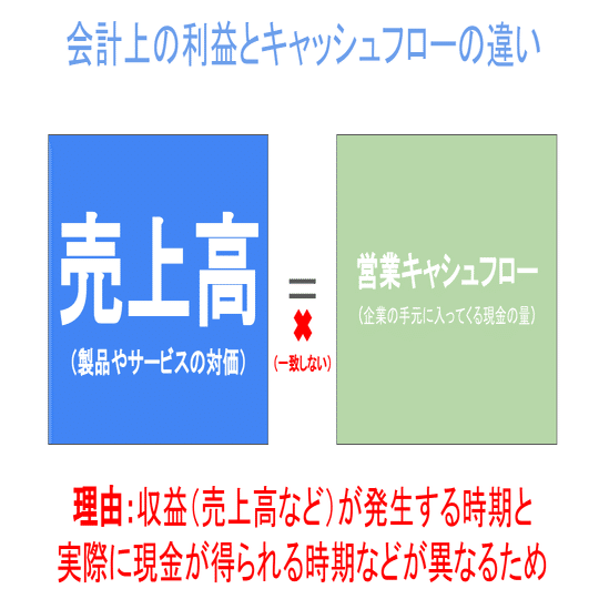 売上高や営業利益は、会計のルールに基づいて計算されますが、これらは実際に企業の手元に入ってくる現金の量とは必ずしも一致しません。